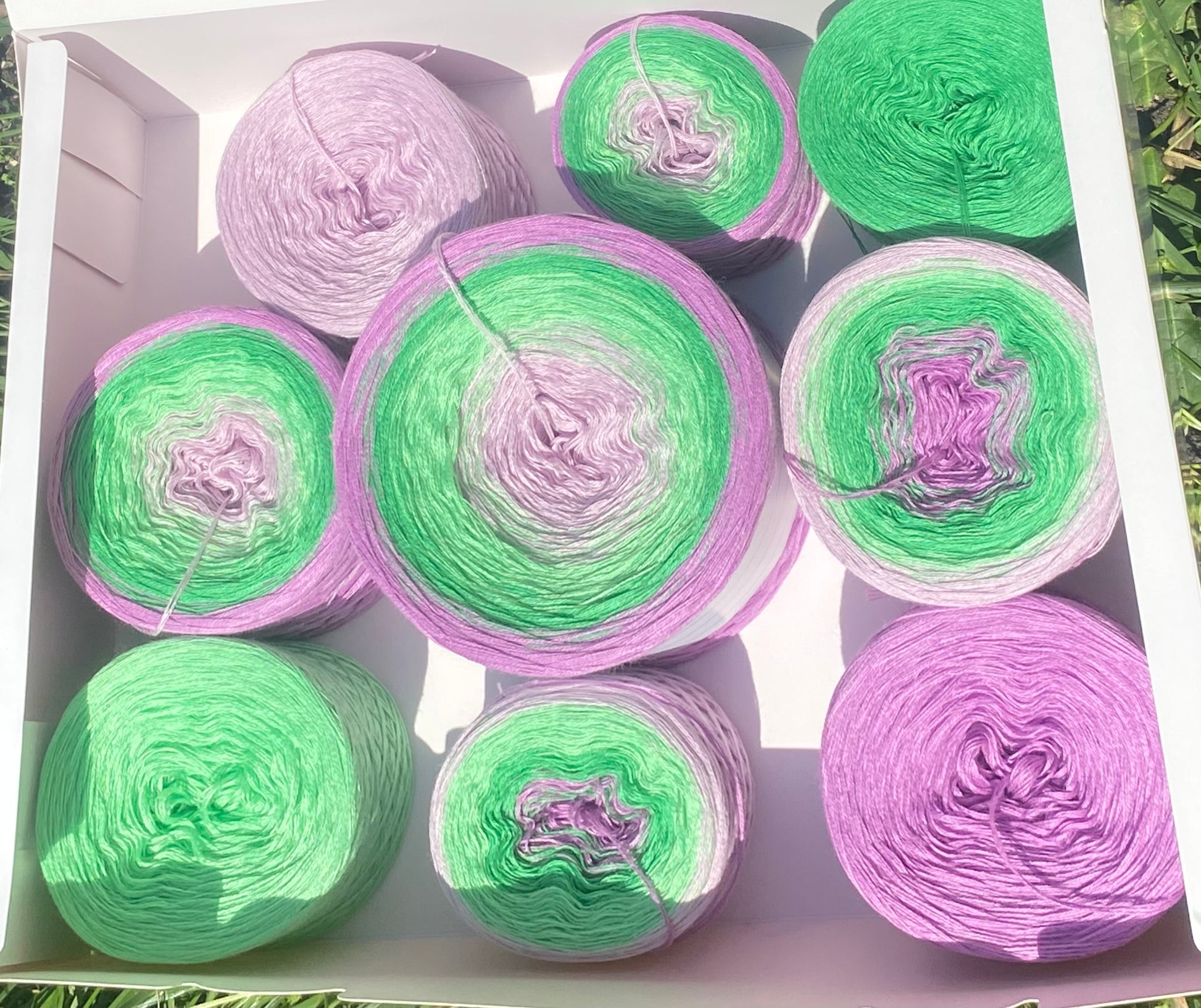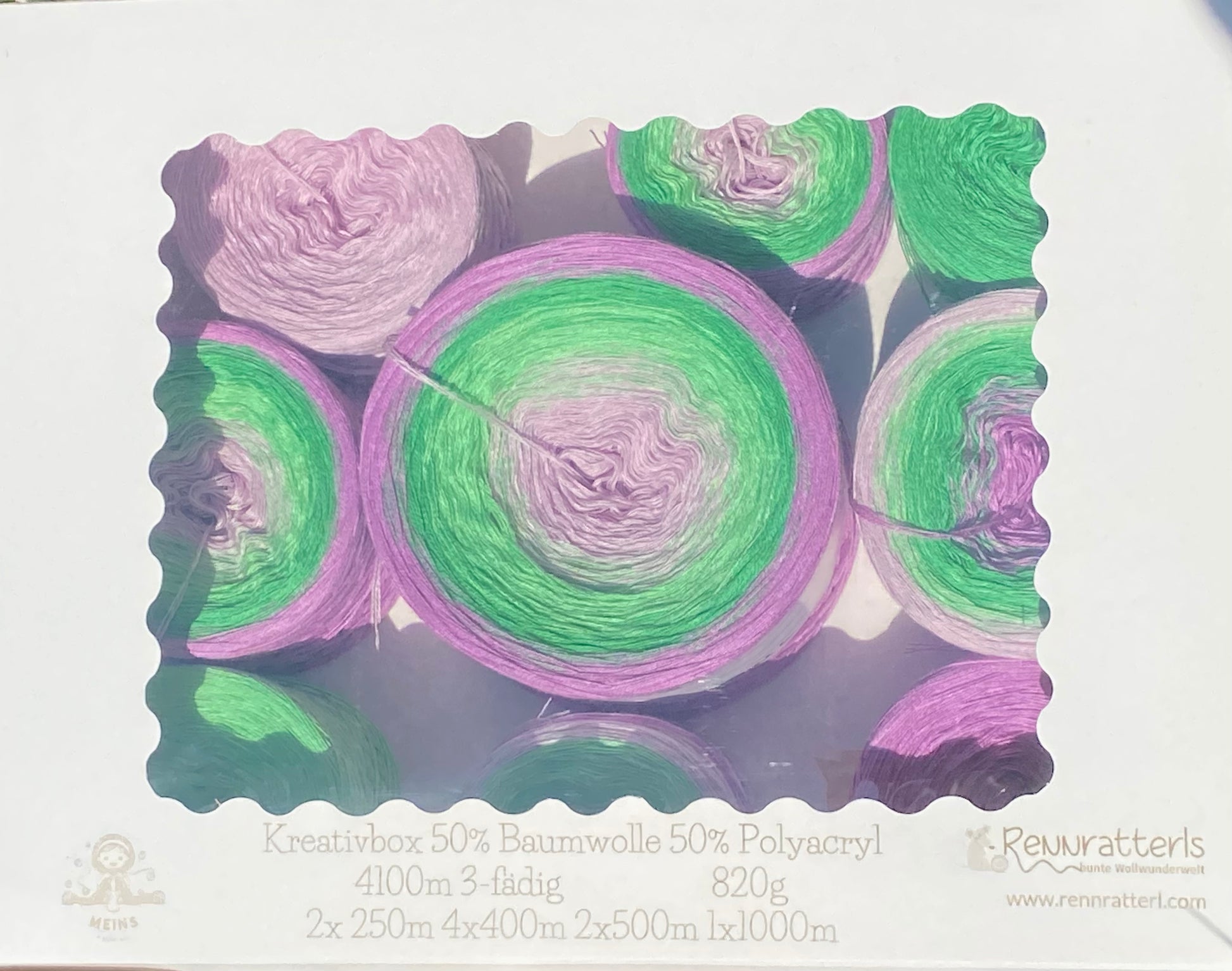 Eine Kreativbox enthält insgesamt  4100m 3-fädiges gefachtes Garn aus