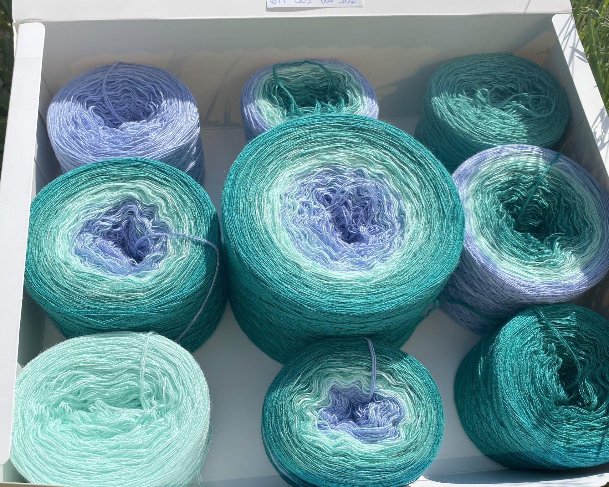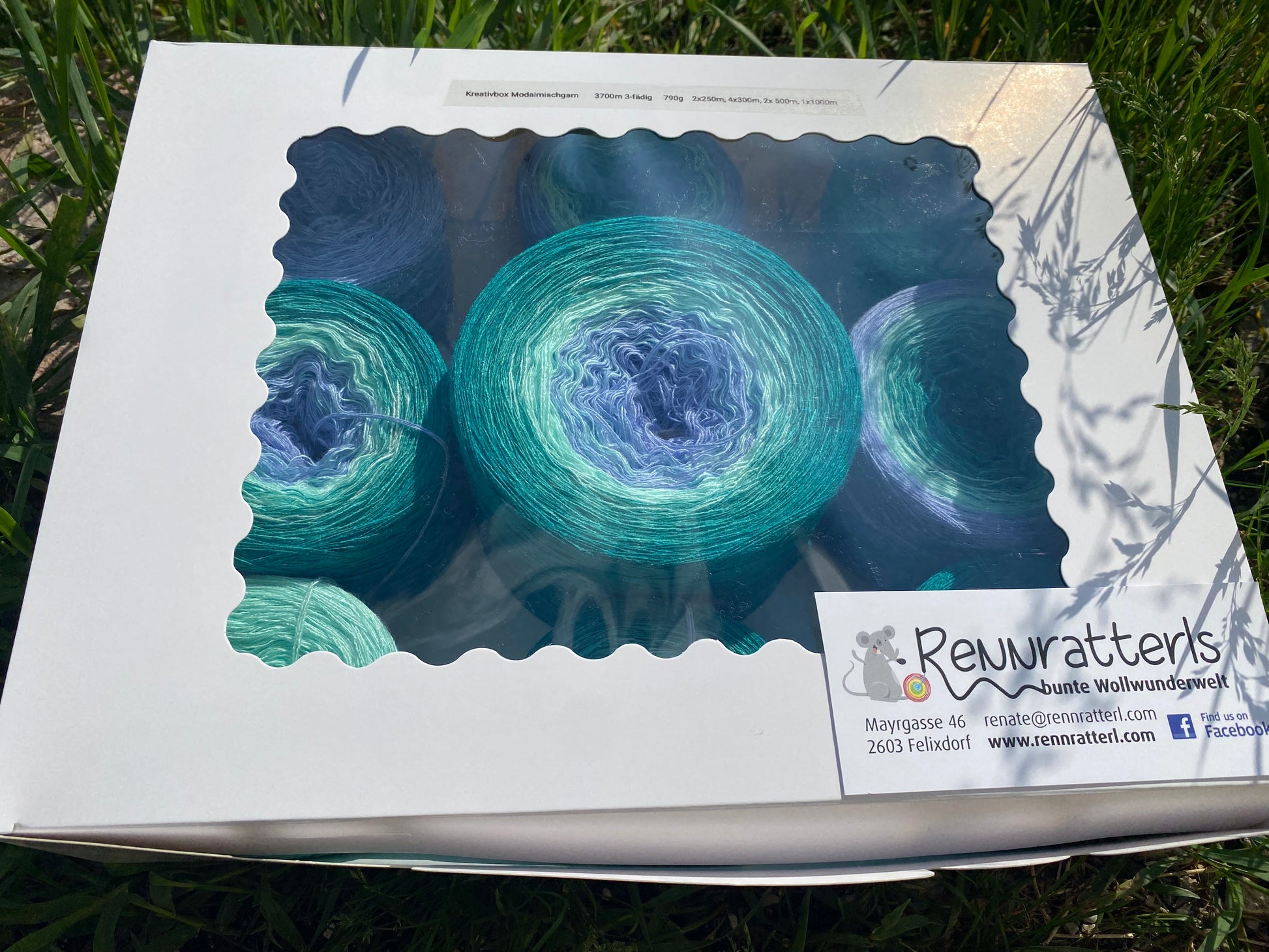 Eine Kreativbox enthält insgesamt  3700m 3-fädiges gefachtes Garn aus