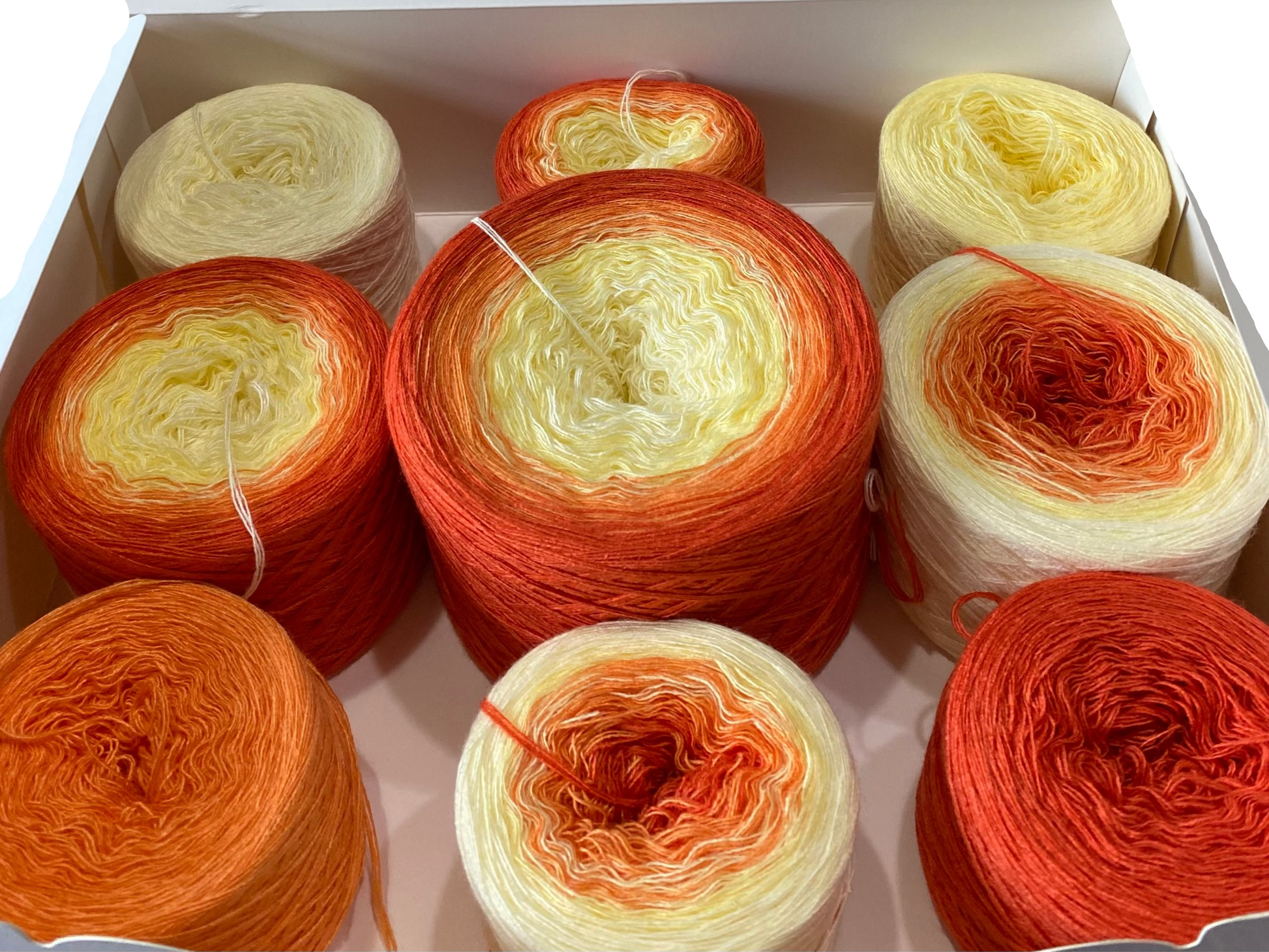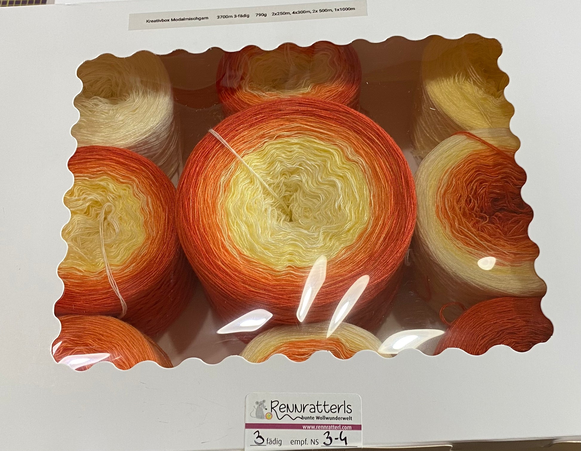 Eine Kreativbox enthält insgesamt  3700m 3-fädiges gefachtes Garn aus