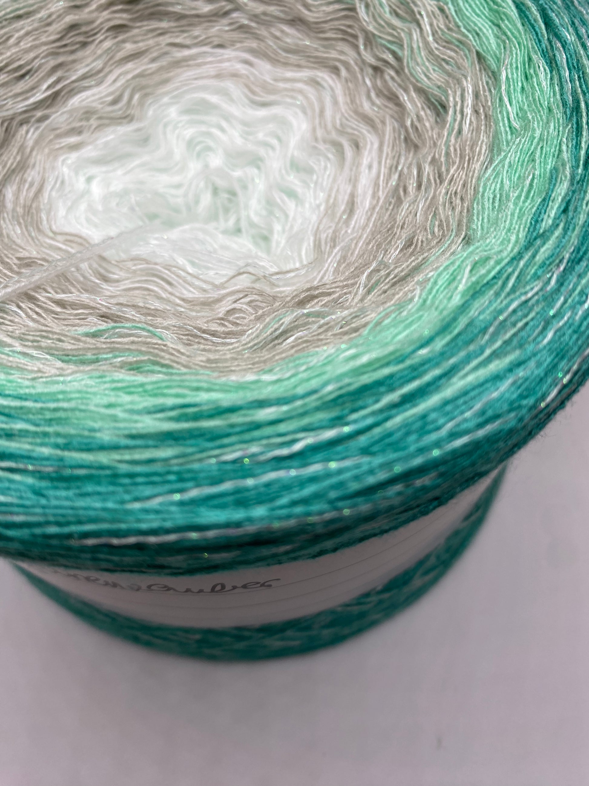4 fädig = 3x Modalmischgern + 1 x Dianalaux Glitzergarn (weiß/irisee)